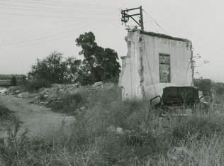A number of houses, exhibiting a variety of architectural features, remain; they are occupied by Jewish families. One of them is a two-storey house with a one-storey annex; it is made of cement and has rectangular doors and windows and flat roofs. Another is a two-storey, two-unit, symmetrical house with two front porches on the top floor. Each porch is defined by five lancet arches. A single wall of another house stands alone, topped by a post that supports an electric wire (see photo). The site is littered with the debris of fallen houses and is overgrown with weeds and tall wild grasses. The cemetery is unkempt and fenced in. The surrounding land, which has been incorporated within the municipal area of Tel Aviv, is in part cultivated but mostly has been covered over by buildings and construction sites. Tel Aviv University is located on this land.